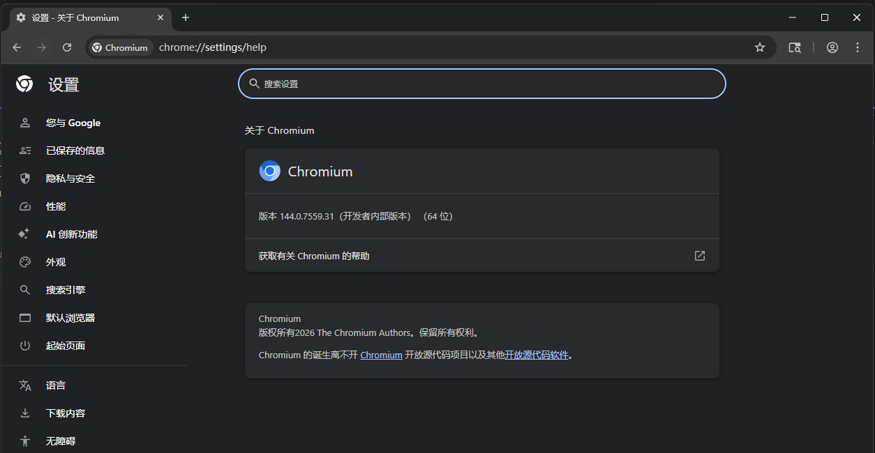 现在,你的 Chromium 144 浏览器已经运行在你的电脑上。你可以:
