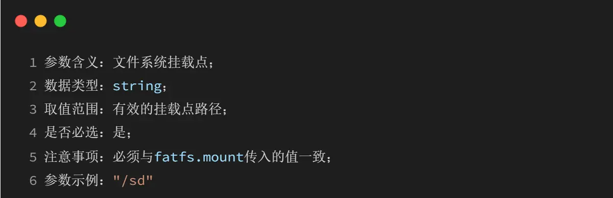 1、必须与fatfs.mount的挂载点参数一致;