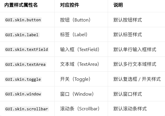 // 按名称获取内置按钮样式(等价于GUI.skin.button)