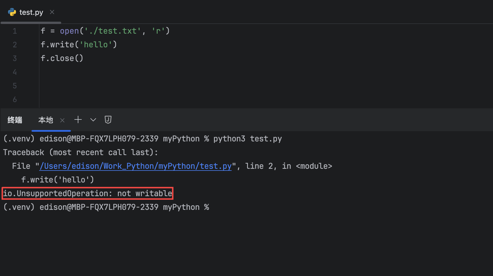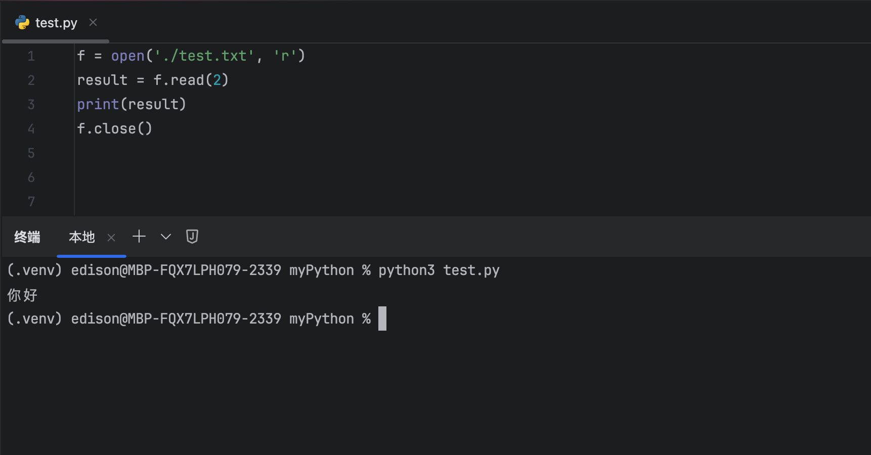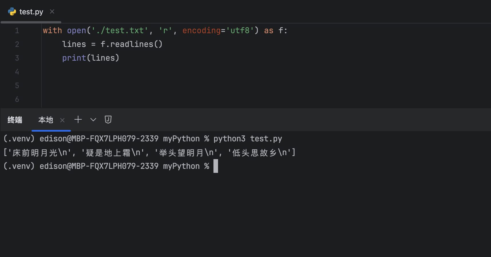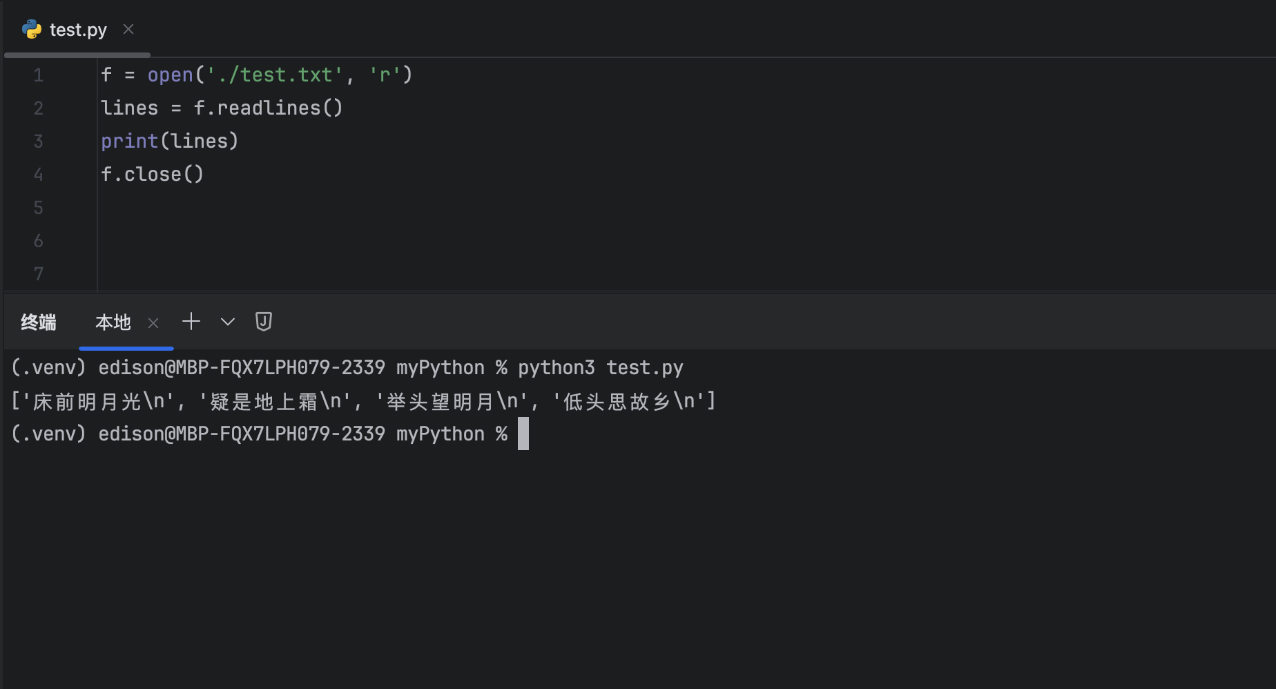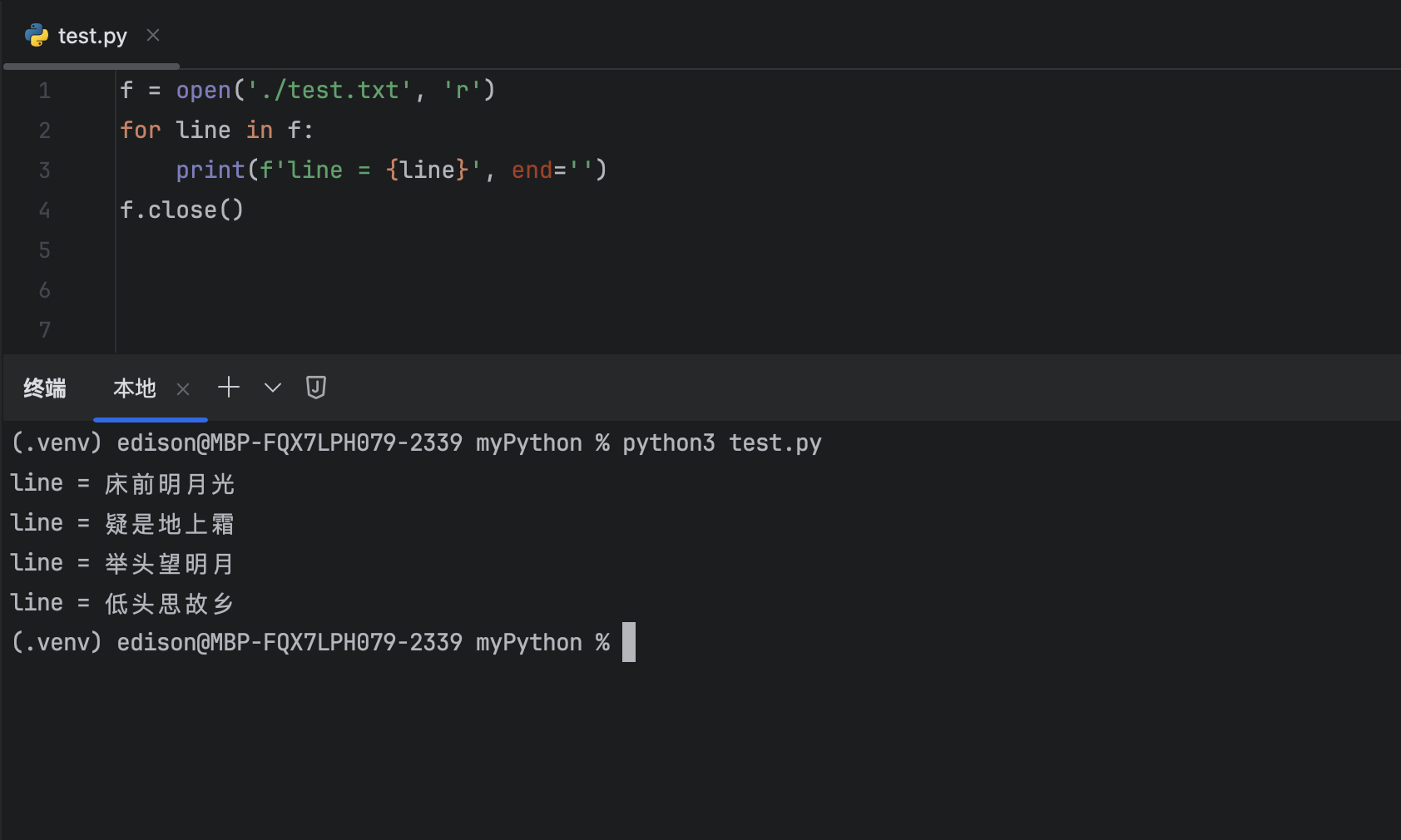 f = open('/Users/edison/Work_Python/myPython/test.txt', 'r')