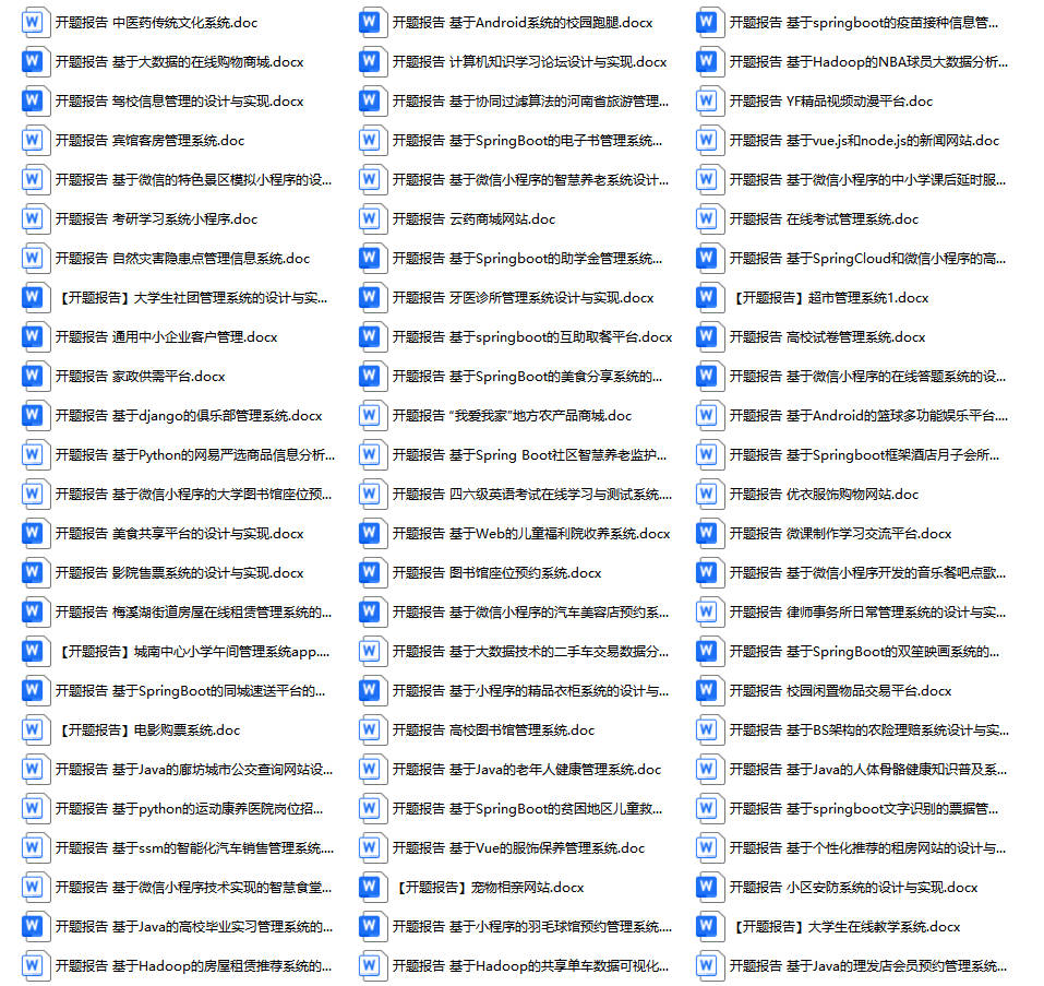以上是某同学的毕业设计答辩的过程,如果你现在还没有参加答辩,还是开题阶段,已经选好了题目不知道怎么写开题报告,可以下面找找有没有自己符合自己题目的开题报告内容,列表中的开题报告都是往届真实的开题报告,可发送使用或参考。文末或底部来联xi可免费获取