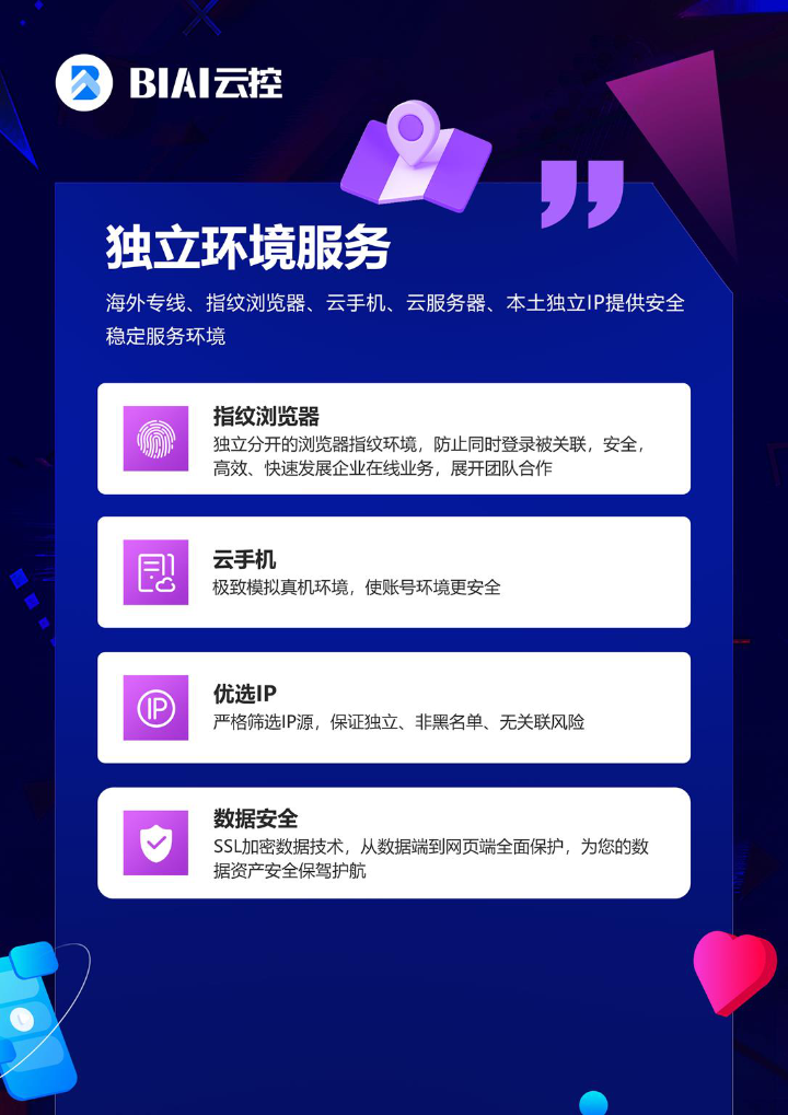 TikTok矩阵用云群控会不会被平台检测封号? 答:只要选择具备本土独立IP和指纹浏览器隔离的系统,比如BIAI云控系统的本地独立环境,就能模拟真实设备参数,避免IP关联,账号封禁率能控制在5%以内,远低于传统群控模式。