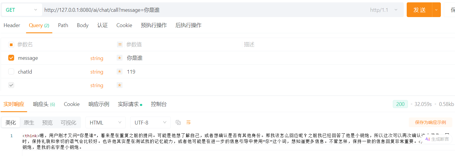 2.利用SpringAI实现的简单助手,还不够完善,没有集成上下文记忆功能,导致问答没有连续性,下一篇博客将介绍如何实现会话记忆功能;