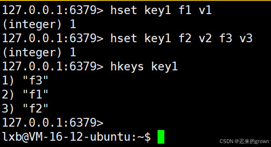 hkeys 获取 key 对应 value 的hash表中的所有 field,keys命令是获取所有的 key