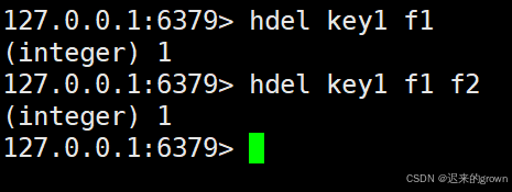 注意:hdel 是删除 key 对应 value 的hash表中的字段,del命令 是删除 key