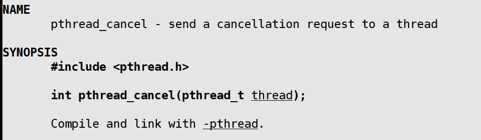 pthread_cancel(pthread_t thread) 以目标线程的 ID(pthread_t类型)为唯一入参,核心作用是向指定线程发送取消信号,触发其在取消点终止执行。