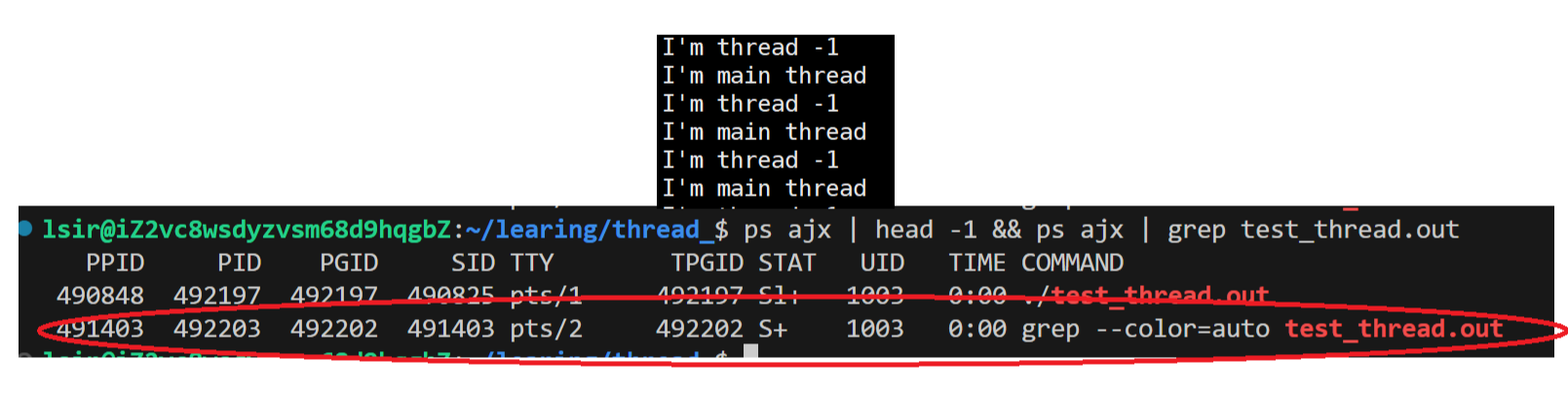 可以发现打印出了两个很大的数字,而且跟我们刚刚通过ps -aL查询到的:LWP标识符大小完全不一样,其实通过这个pthread_self函数获取到的ID并不是LWP提供的标识符,而是pthread库给每个线程维护的进程内唯一标识符,由于每个进程都有自己独立的空间,故而该标识符的作用域是进程内而非系统全局,这个标识符其实对应的是一个进程虚拟空间上的地址,通过这个地址可以找到该线程相关信息。