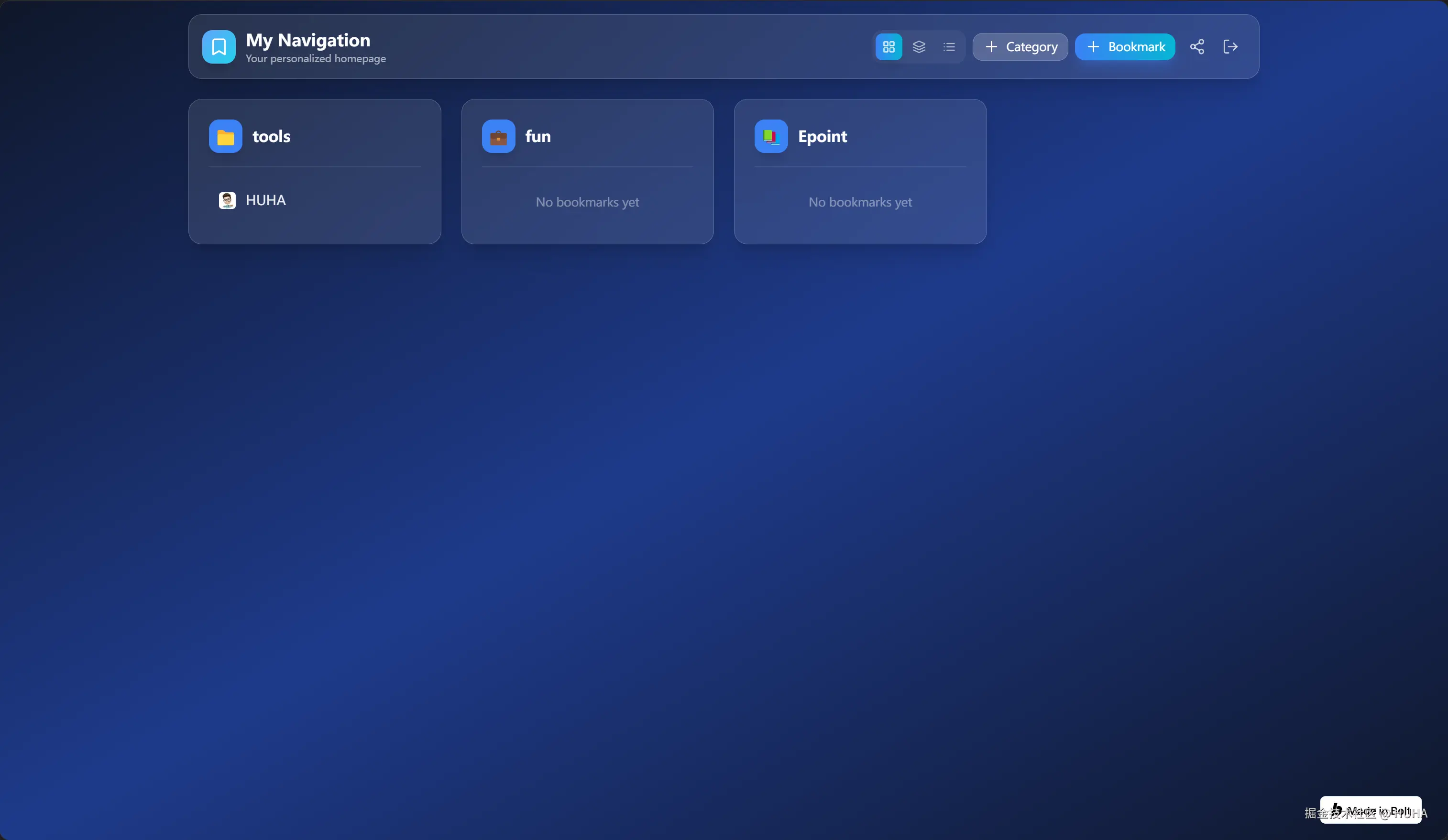 为什么?因为浏览器书签太乱了。常用的开发工具、设计资源、AI工具散得到处都是。每次找都要半天。我想有个地方,把常用的链接都集中起来,还能按类别整理。