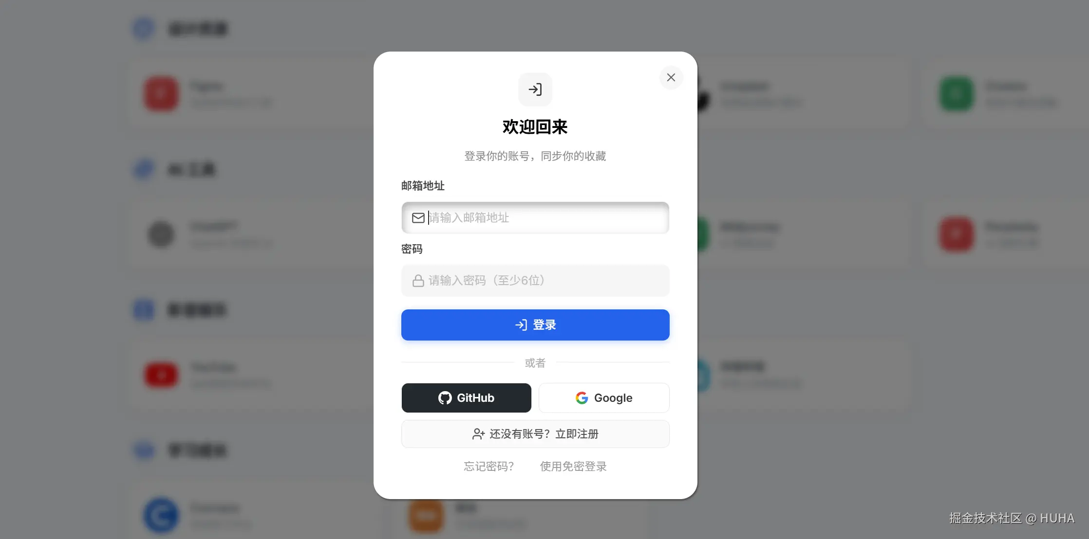 "帮我为这个导航页添加登录注册功能,使用邮箱和密码认证。"