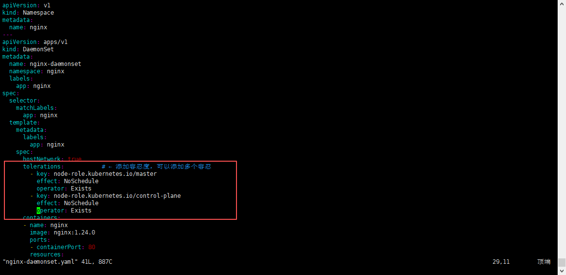 DaemonSet方式部署Nginx服务,并展示有污点的情况下,启用容忍与不启用的区别;