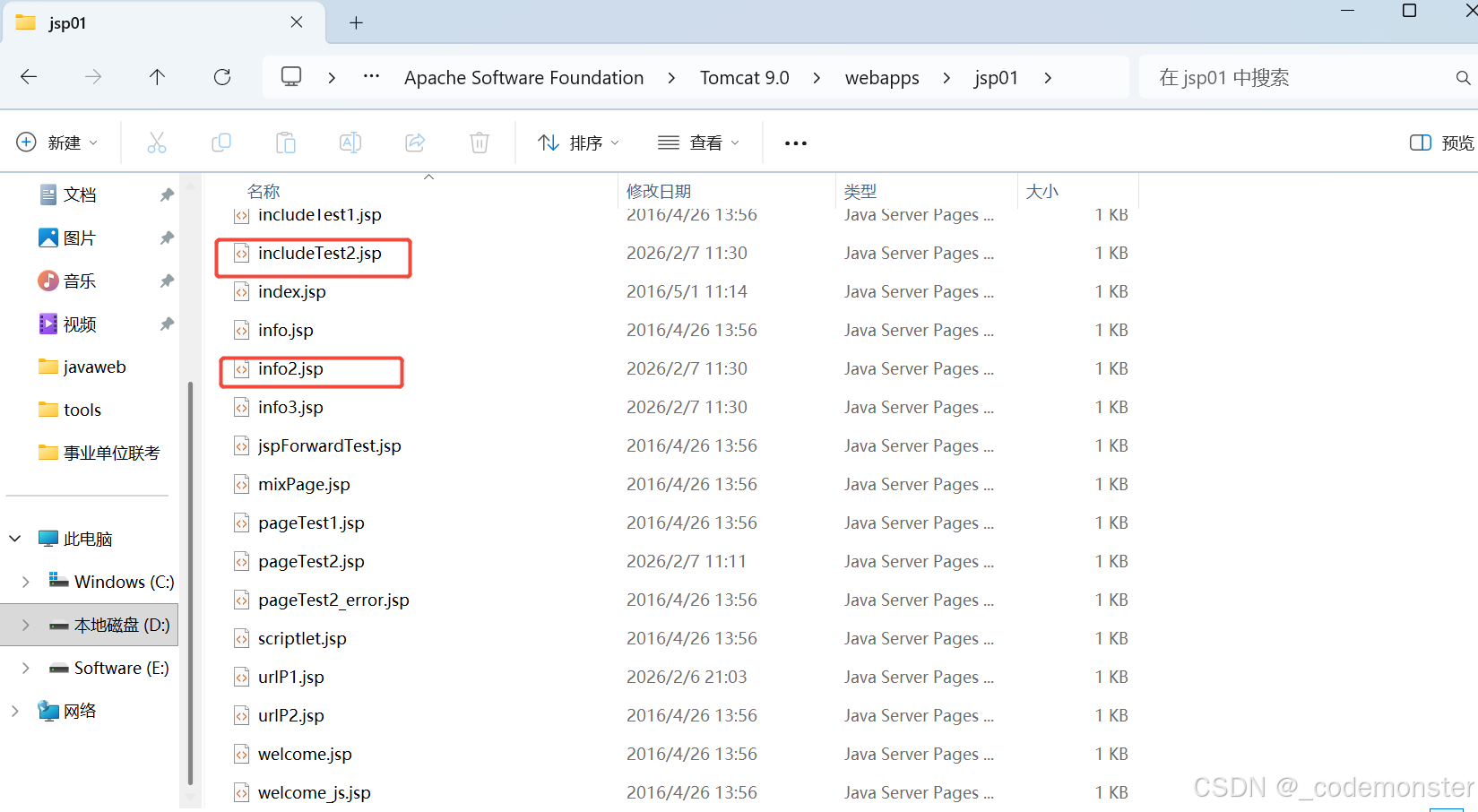 此时可以看到includeTest2.jsp和info2.jsp已经在部署文件夹中存在