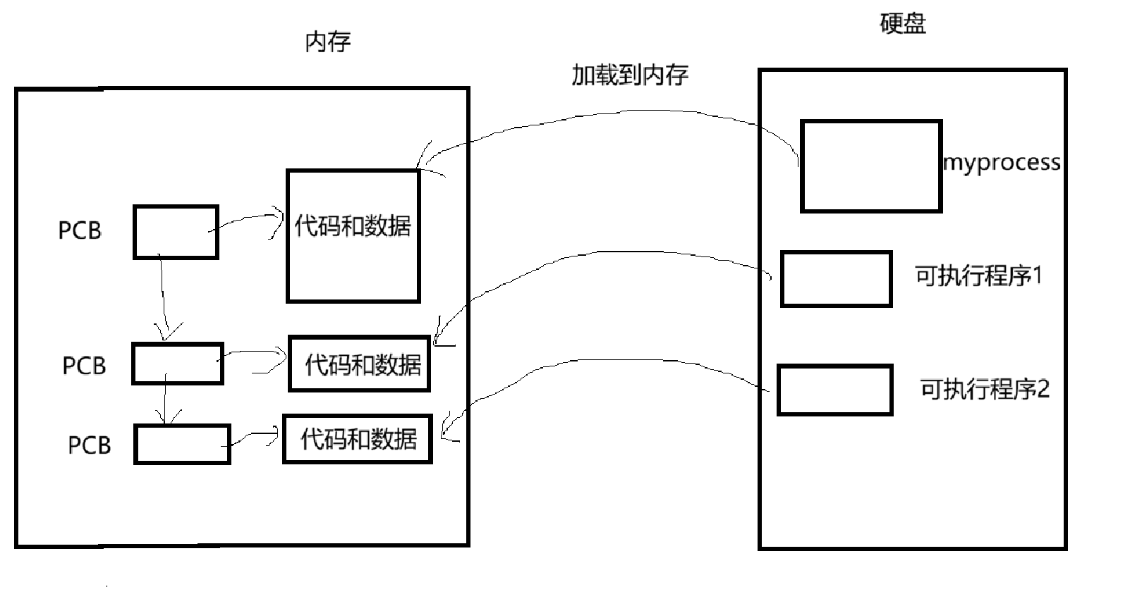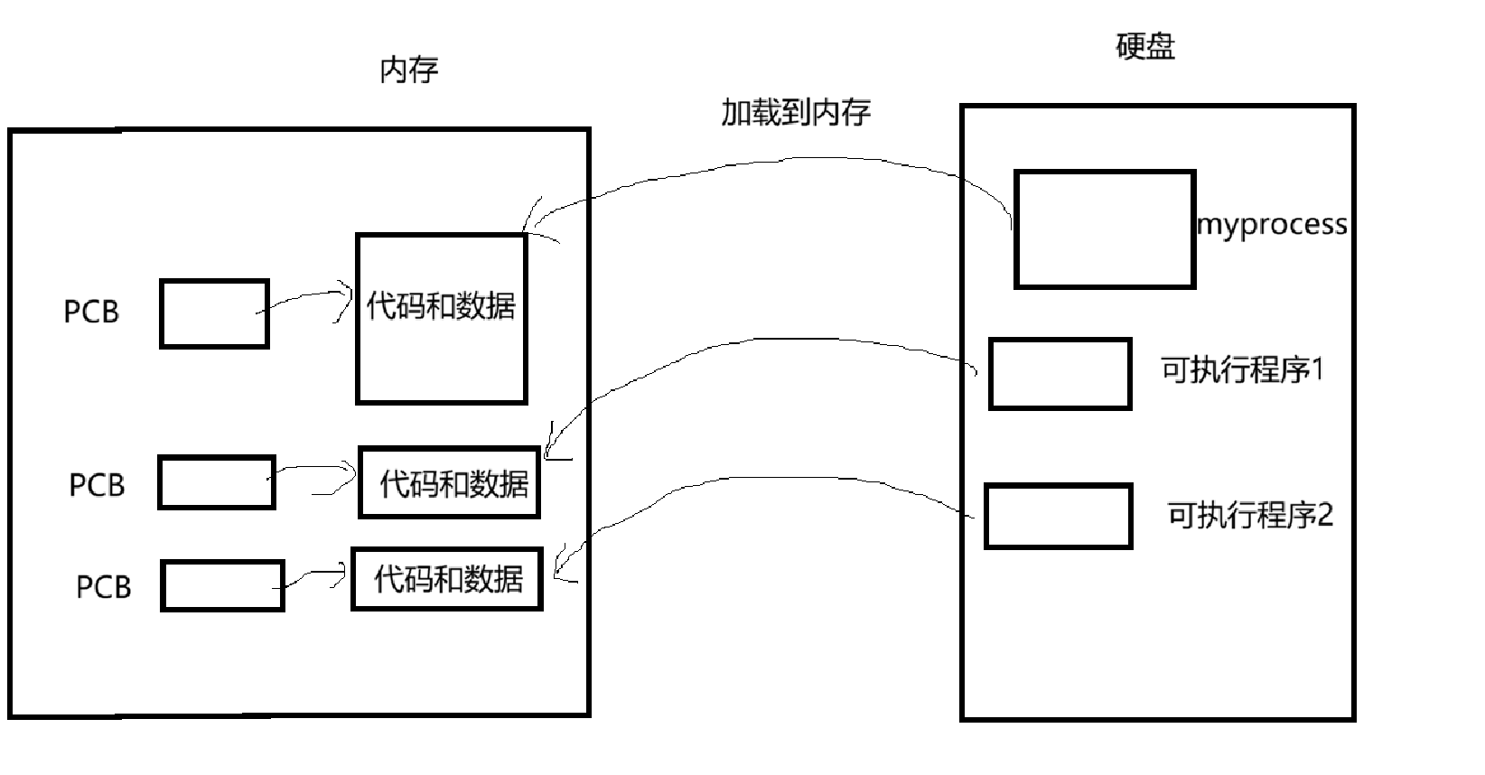 在Linux中的PCB是 task_struct 这个结构体。所以当进程加载到内存的时候,还会创建PCB,记录着该进程的信息。