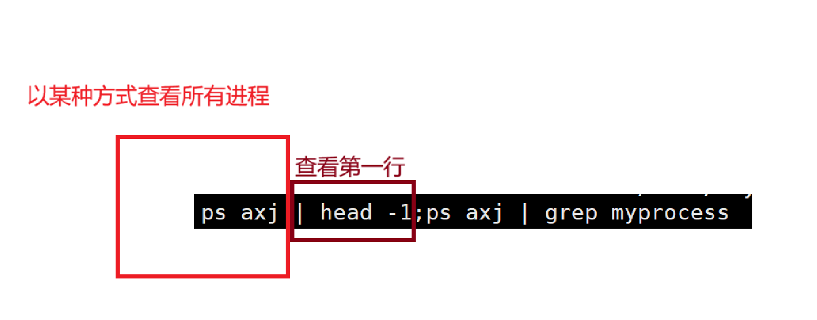 两条指令通过封号(或者&&)连接起来,最终显示myprocess进程的属性和值