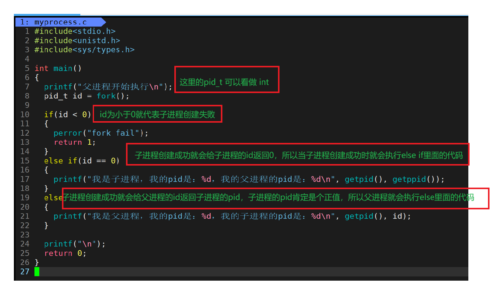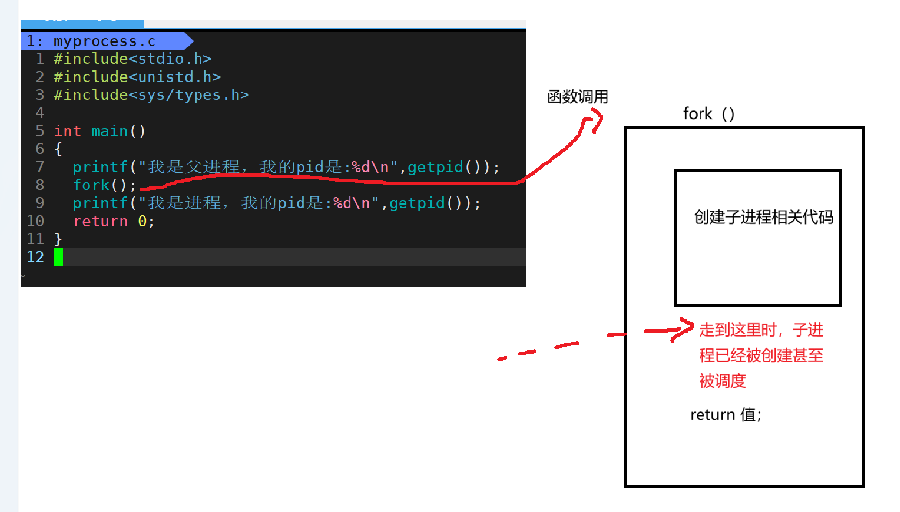 fork函数需要给父进程和子进程返回不同的内容: