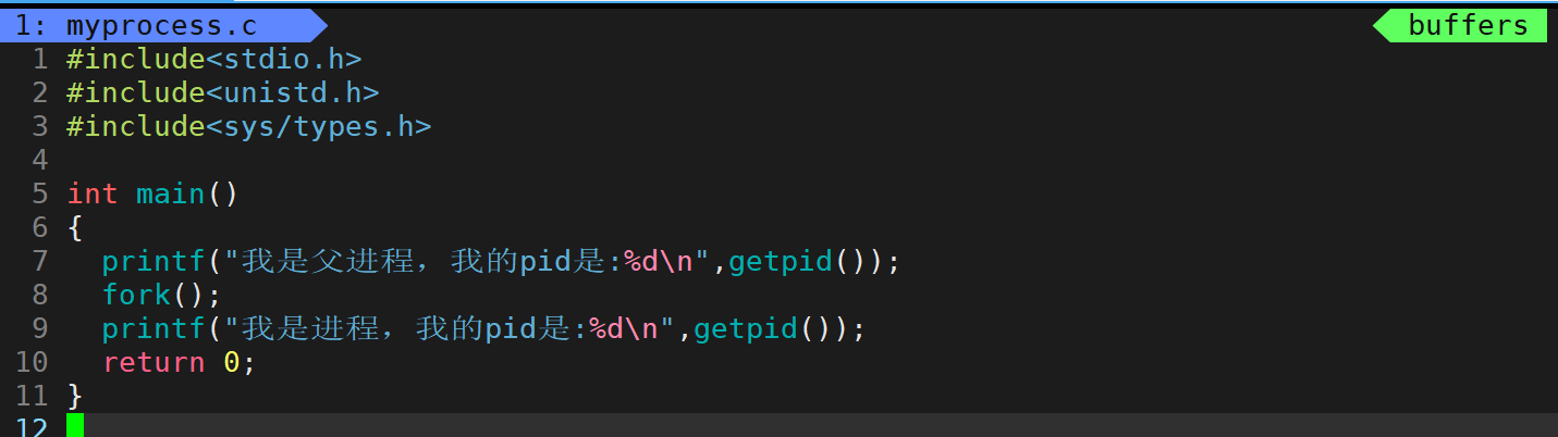 现在来用代码来创建子进程,使用库函数fork()