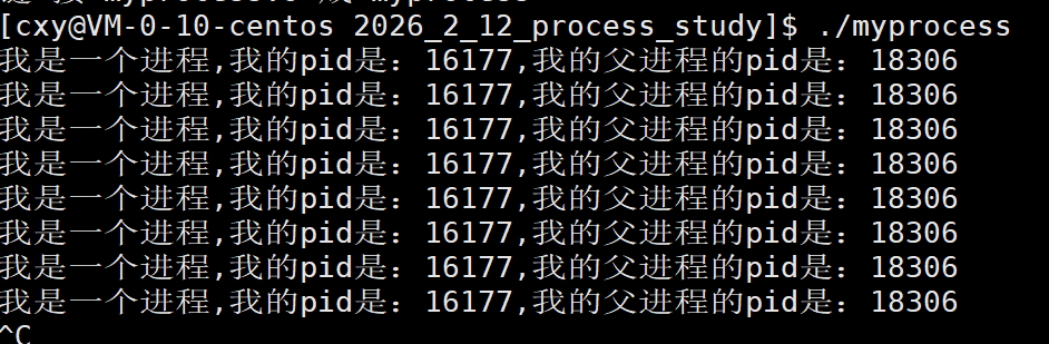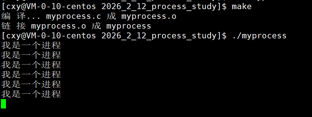 现在已经有了myprocess这个可执行程序。我们来运行它。