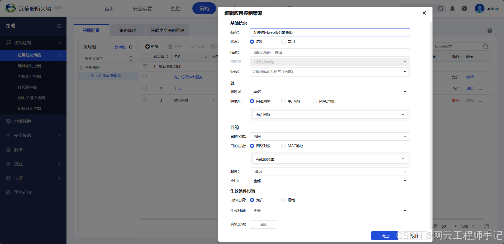 - 保存策略:确认策略排序正确(优先于拒绝策略),避免策略冲突导致访问失败。