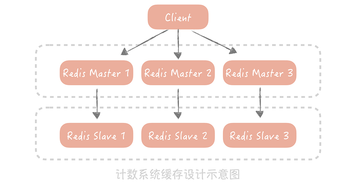 与此同时,计数的访问量级也有质的飞越。在微博最初的版本中,首页信息流里面是不展示计数数据的,那么使用 MySQL 也可以承受当时读取计数的访问量。但是后来在首页信息流中也要展示转发、评论和点赞等计数数据了。而信息流的访问量巨大,仅仅靠数据库已经完全不能承担如此高的并发量了。于是我们考虑使用 Redis 来加速读请求,通过部署多个从节点来提升可用性和性能,并且通过 Hash 的方式对数据做分片,也基本上可以保证计数的读取性能。然而,这种数据库 + 缓存的方式有一个弊端:无法保证数据的一致性,比如,如果数据库写入成功而缓存更新失败,就会导致数据的不一致,影响计数的准确性。所以,我们完全抛弃了 MySQL,全面使用 Redis 来作为计数的存储组件。