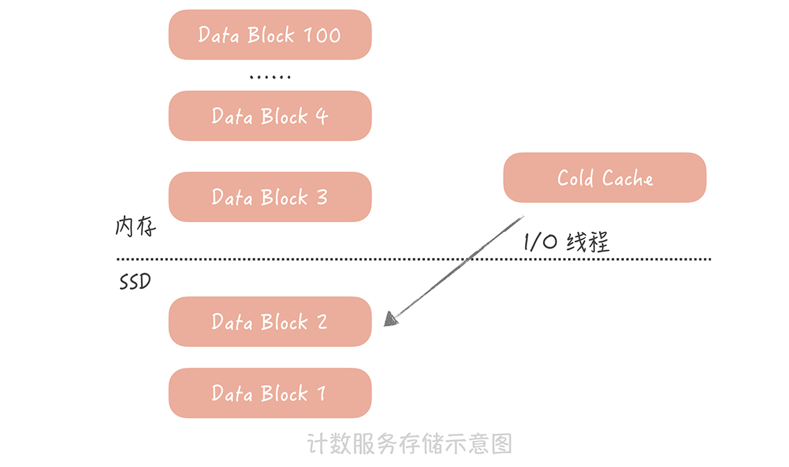 使用 SSD+ 内存的方案可以最终解决存储计数数据的成本问题。这个方式适用于冷热数据明显的场景,你在使用时需要考虑如何将内存中的数据做换入换出。