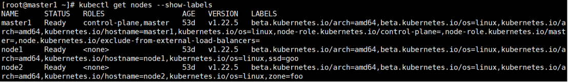 [root@master1 ~]# kubectl label nodes node1 zone=foo