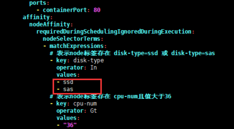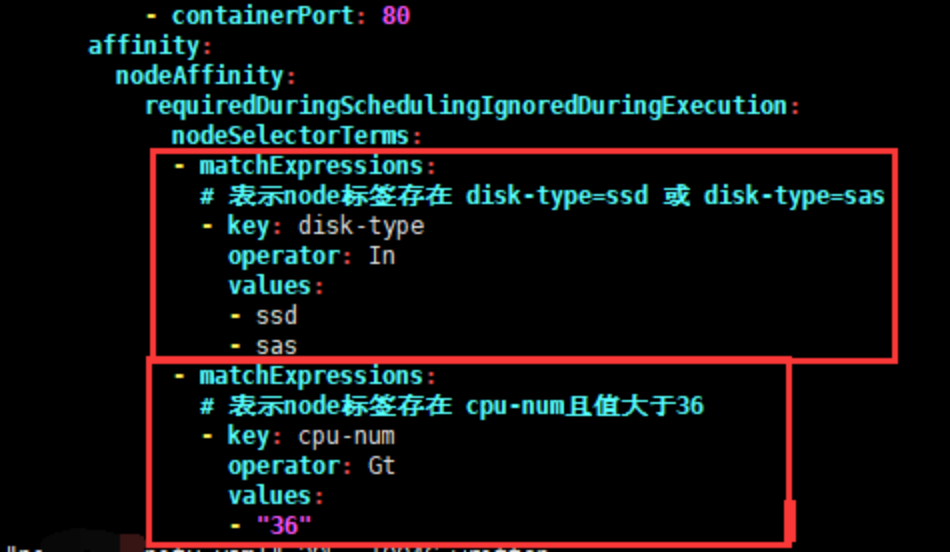 方式二:Pod 使用 spec.affinity 支持 matchExpressions 属性 (复杂标签选择机制)