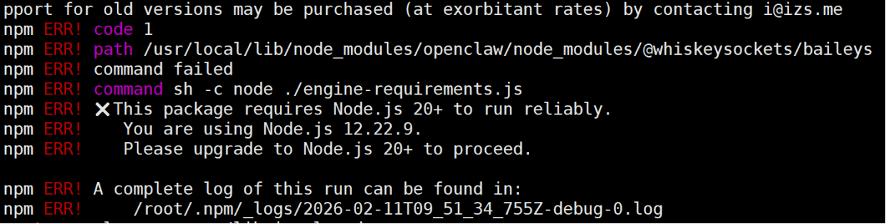 # 包的 package.json 里没有配置 bin 字段,或者,openclaw 的入口脚本没有执行权限