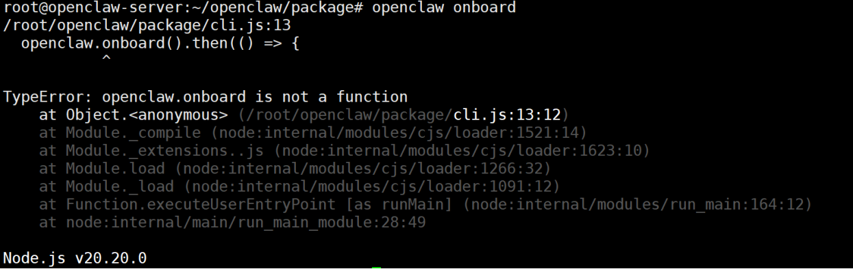 从截图来看,node ~/openclaw/package/index.js --version 没有输出,说明这个入口文件本身可能不是 CLI 入口,或者缺少必要的参数 / 配置,导致它静默退出了。