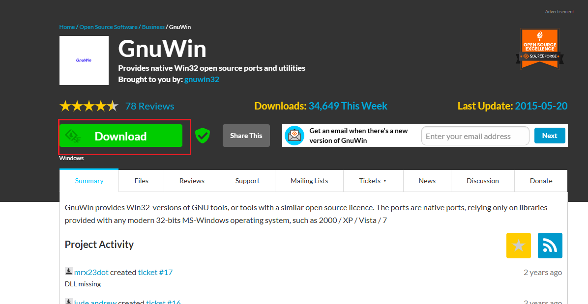 - 访问 http://gnuwin32.sourceforge.net/packages/coreutils.htm 下载 coreutils 包。或者是GnuWin download | SourceForge.net