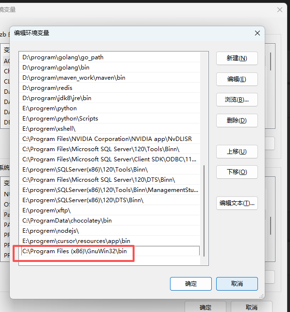 安装后,将安装目录下的 bin 文件夹添加到系统 PATH 环境变量如下图所示。