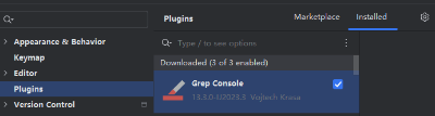 如果使用idea等编译器,可以安装一些类似的插件来实现tail功能效果,例如idea的GrepConsole插件,安装GrepConsole插件直接在插件市场搜索即可。如下图