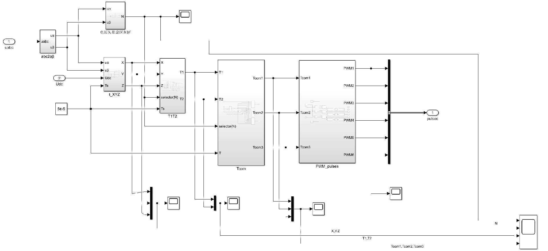 整个项目最酷的当属SPWM生成部分。Matlab仿真截图里那些完美正弦波背后,是死磕了三个星期的载波比调整。后来找到的黄金比例是载波频率15kHz,调制比M=0.8,这个配置下THD能控制在5%以内。
