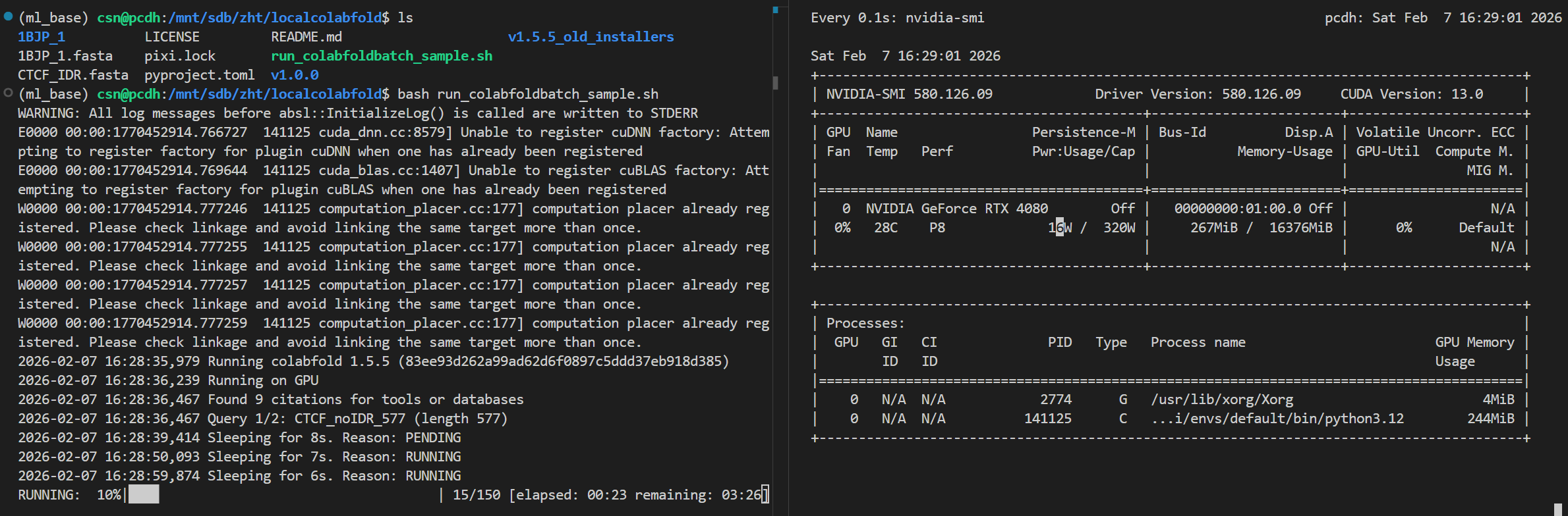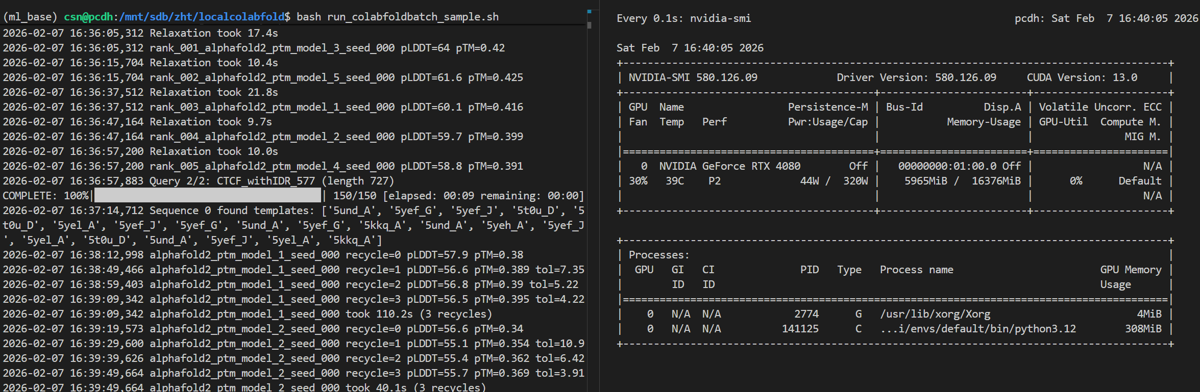 其实我们可以看到,命令行非常简单,其实本质就只有colabfold_batch这个命令,参数只需要input的fasta序列、输出文件夹即可。
