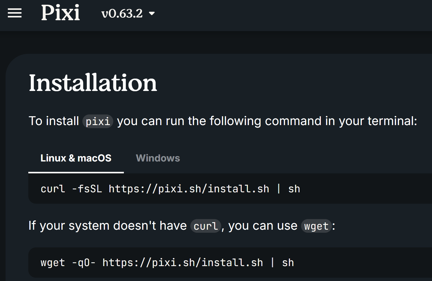 - [3,按照对应指引安装 pixi 包管理器](#3,按照对应指引安装 pixi 包管理器)