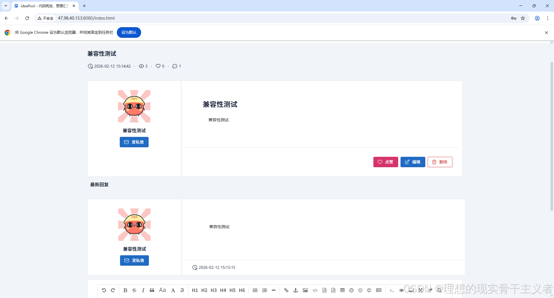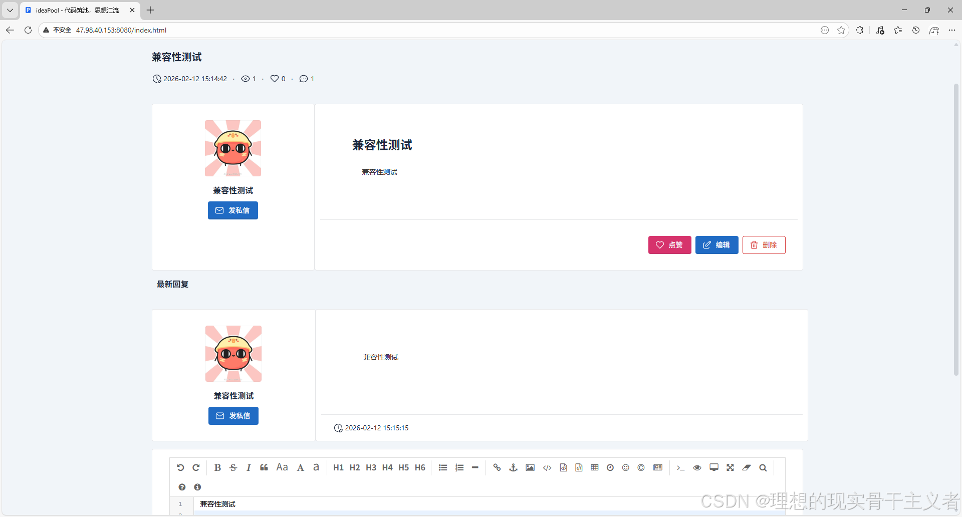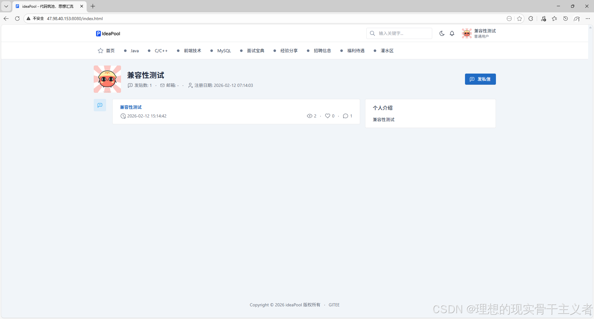 ideaPool 论坛系统已具备完整可用的业务功能与稳定的运行能力: