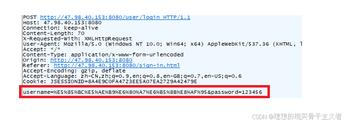 - 通过抓包可查看用户名、密码明文,存在信息泄露风险 ,需要增加前端加密(如 RSA/AES)或启用 HTTPS