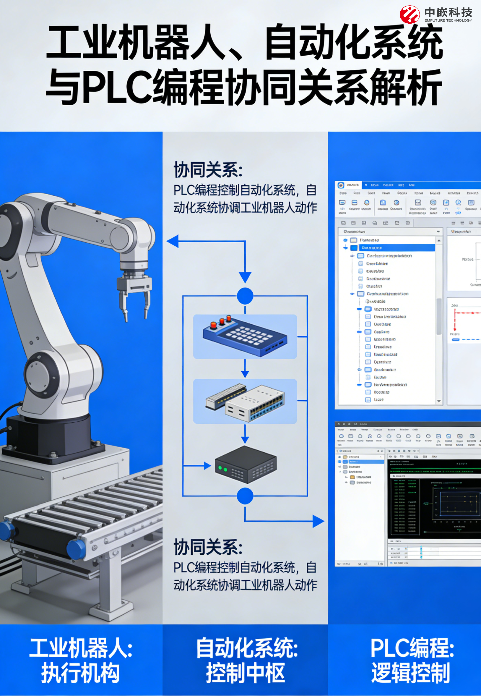 工业自动化领域最核心且最具实操性的痛点------不少从事现场调试、方案设计的从业者,常会混淆工业机器人、自动化系统与PLC编程三者的关系。作为长期深耕工业互联网一线的从业者,我将以通俗易懂的方式,拆解三者"如齿轮般紧密咬合"的协作逻辑,规避晦涩专业套话,尽量贴合现场实际操作场景,让大家清晰理解其关联。