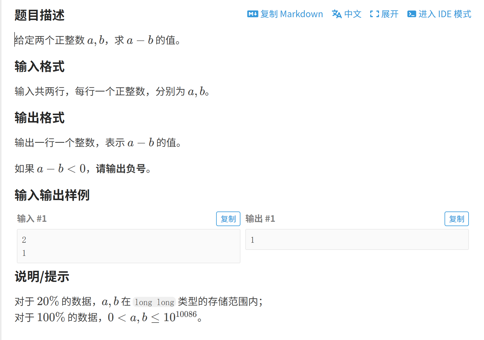 string s1, s2; // 存储输入的两个超长数字字符串