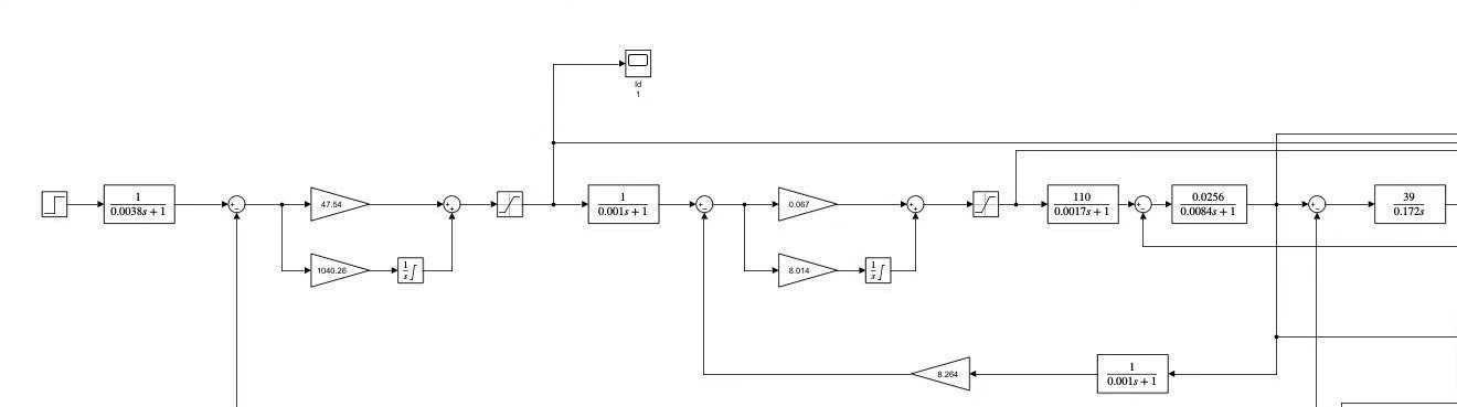 转速环按典型二型系统设计更带劲。这里有个玄学参数------中频带宽h选5最合适。推导时记得把电流环等效成惯性环节,最后算出转速环Kp=3.2,Ki=18.4。在模型里用Transfer Fcn模块实现转速滤波,时间常数设0.01秒,防止高频干扰捣乱。