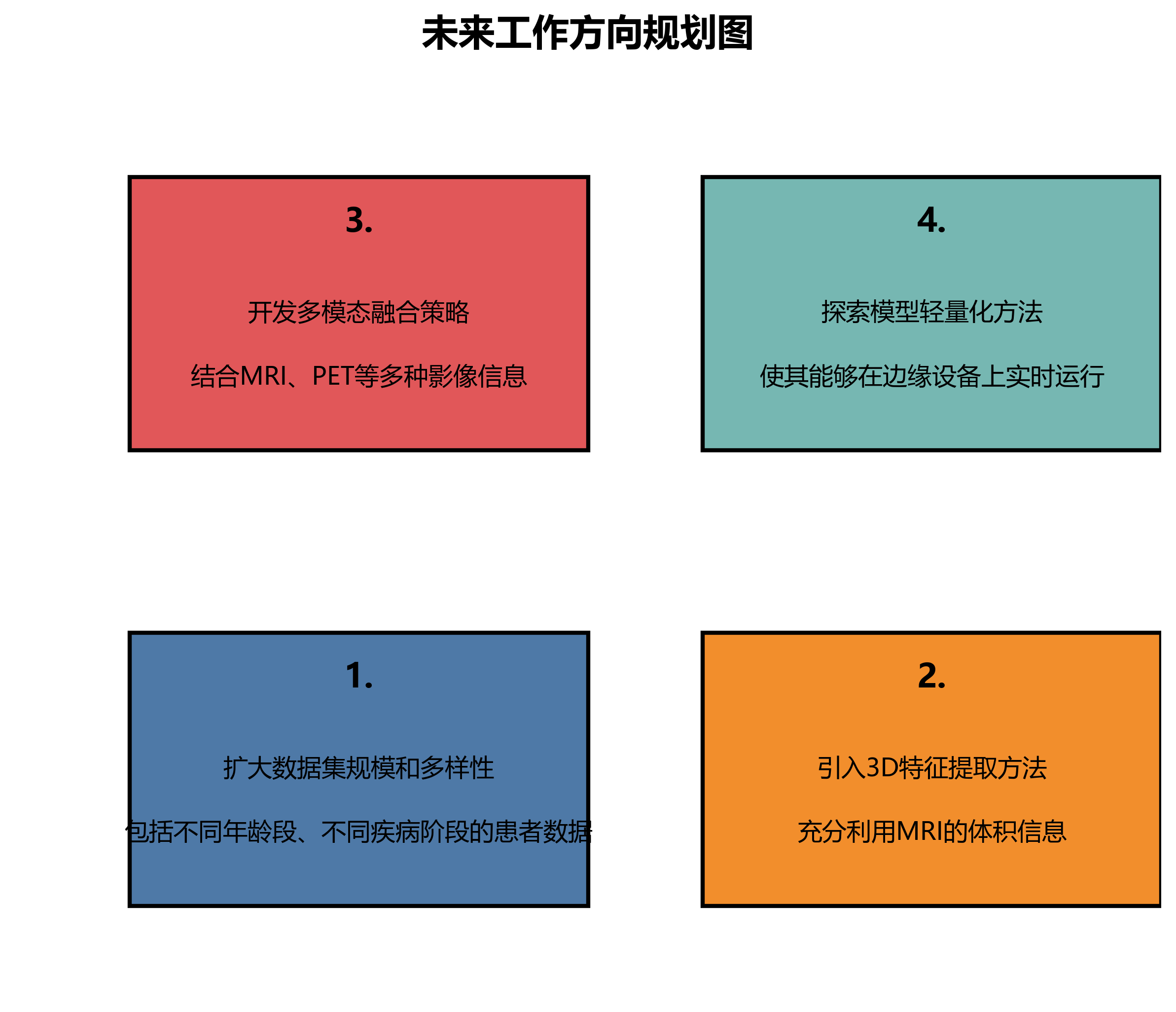 - 扩大数据集规模和多样性,包括不同年龄段、不同疾病阶段的患者数据。