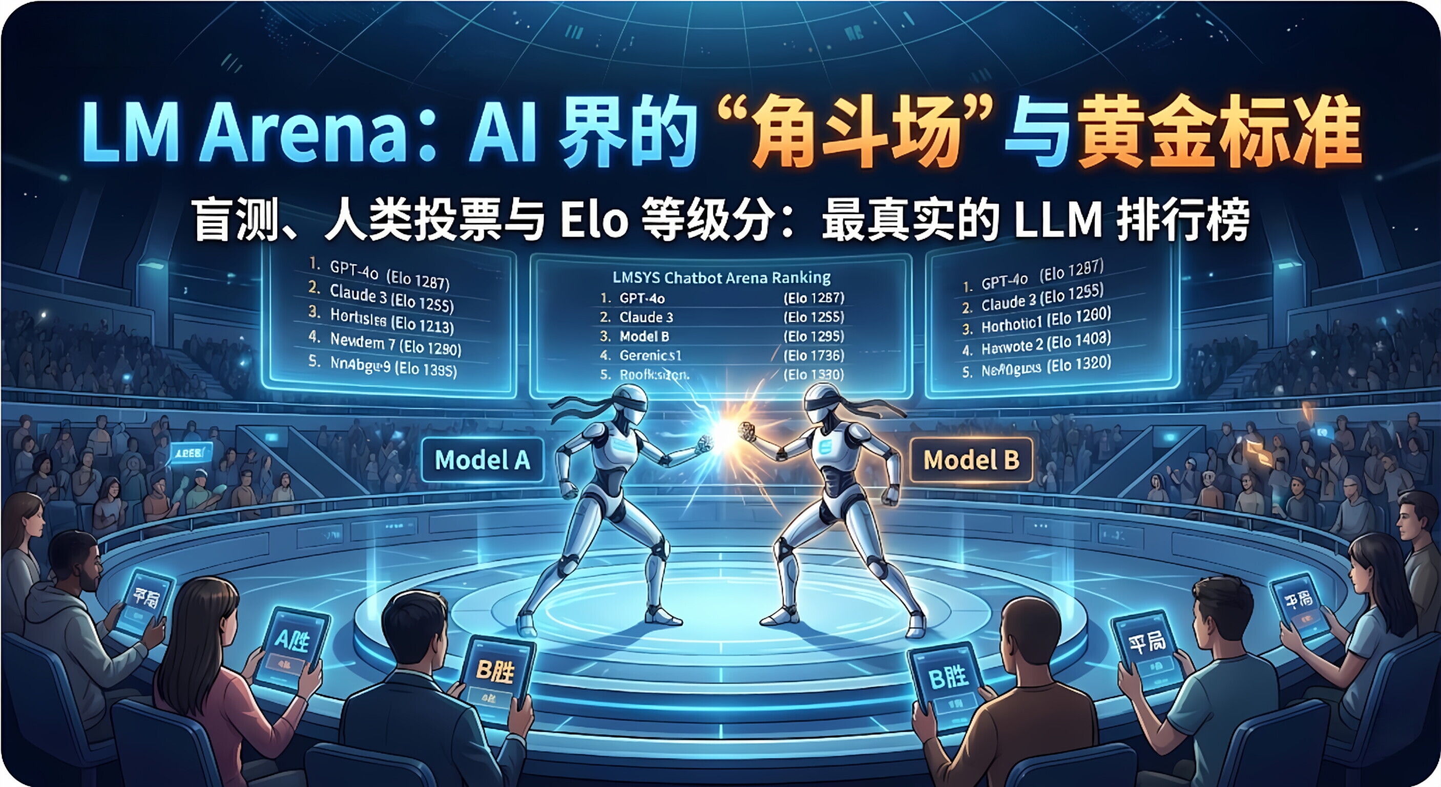在其他榜单还在让 AI 做"选择题"(跑分)的时候,LM Arena 采取了最原始、最残酷但也最有效 的方式:让两个 AI 蒙上眼睛,在人类面前打一架,由人类裁判决定谁赢。