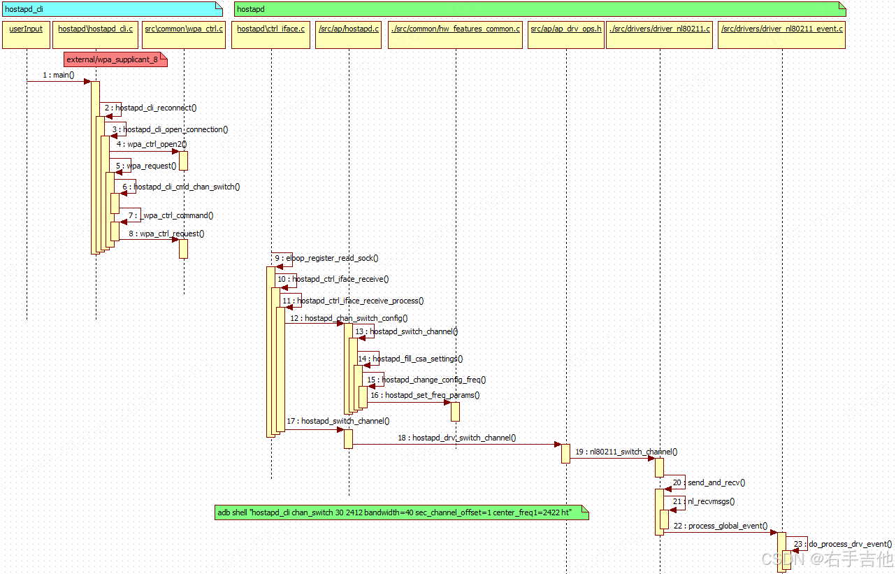 相关调用流程如下,最终通过driver_nl80211.c调用到wifi固件中,高通平台默认在vendor/qcom/opensource/wlan中,不同WIFI平台不同