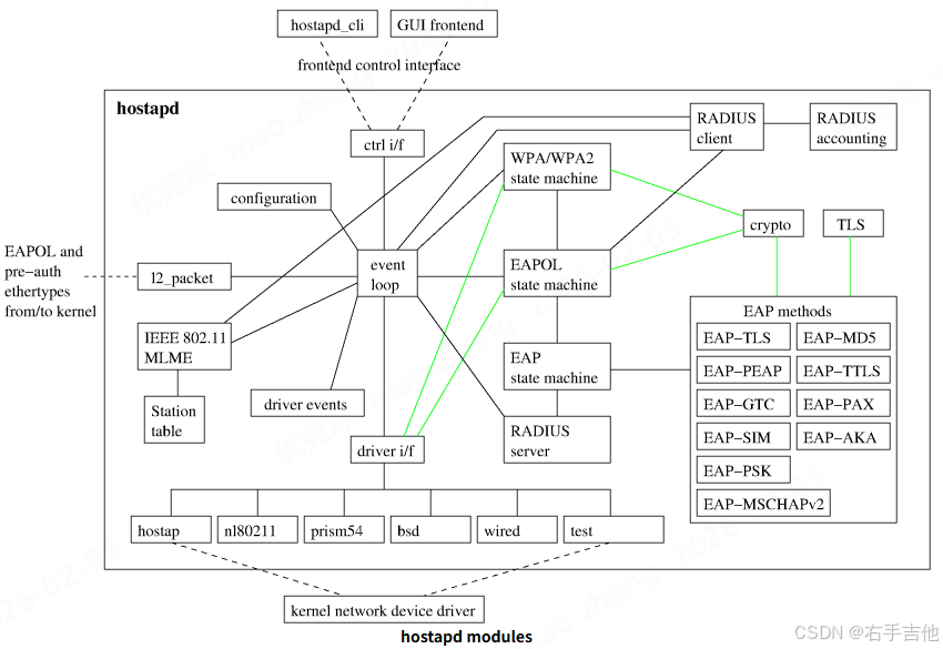参考相关网页https://w1.fi/wpa_supplicant/devel/index.html 查看hostapd相关架构图如下