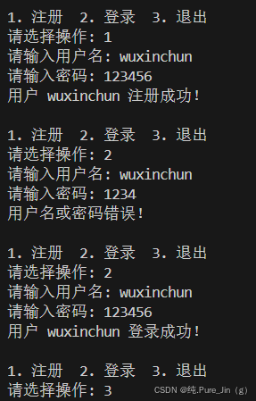 print("\n1. 注册 2. 登录 3. 退出")