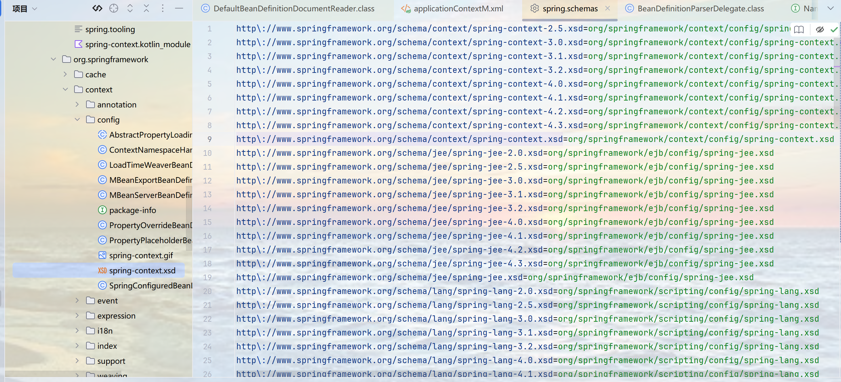 它也是虚拟地址,映射到spring-context\5.3.7\spring-context-5.3.7.jar!\META-INF\spring.schemas: