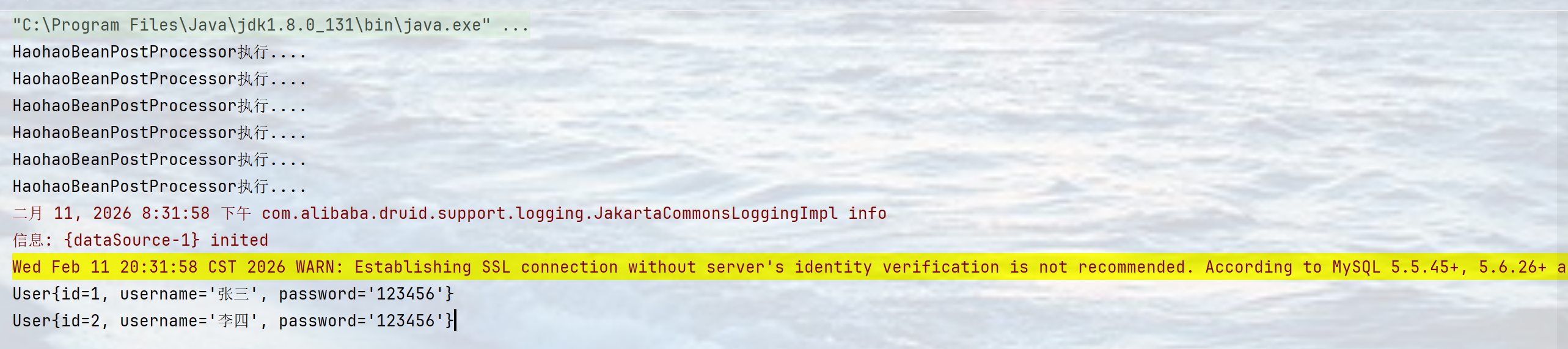 System.out.println("HaohaoBeanPostProcessor执行....");