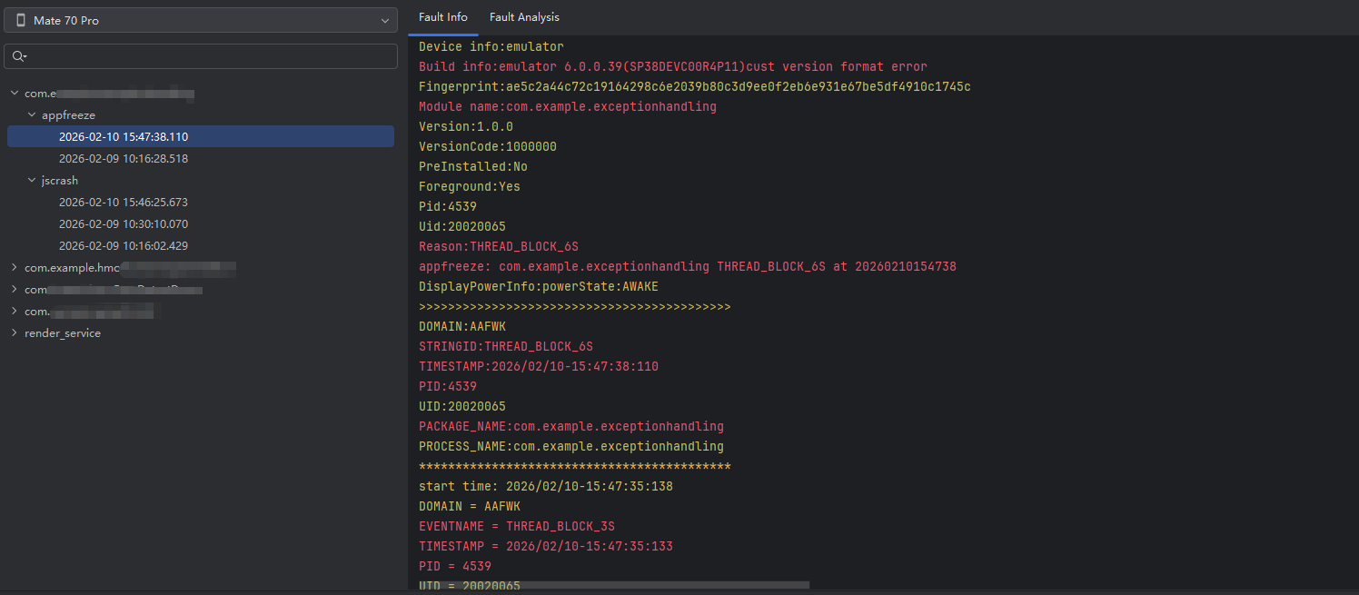 在实际测试中,我发现异常事件的回调有一定延迟,通常在应用重启后1分钟左右才会触发。这不是代码问题,而是系统设计如此------系统需要时间处理异常数据。异常捕获功能在模拟器上可能表现不完全,建议在真机上进行测试。
