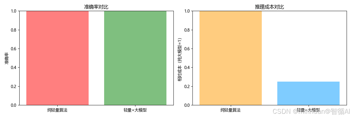 ax2.set_ylabel("相对成本(纯大模型=1)")