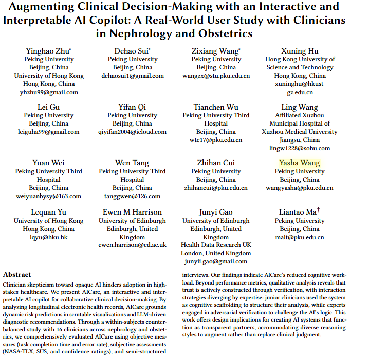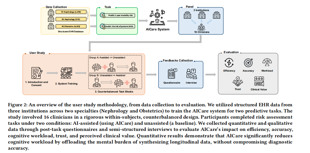本文介绍了AICare交互式AI临床副驾驶系统,通过真实临床环境中16名医生的用户研究,验证了可解释AI在肾脏病和产科高风险决策场景中的有效性与实用价值。