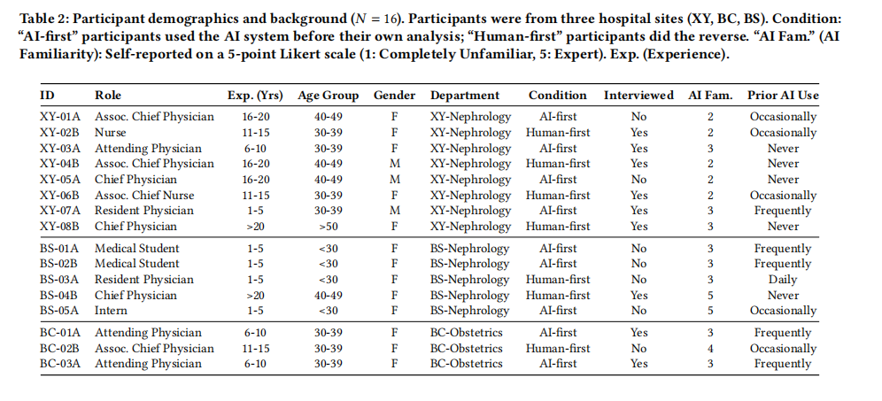 尽管存在差异,两个专业的医生都强调了对透明性 和可验证性的共同需求。无论专业背景如何,临床医生都希望理解AI的推理过程,而非盲目接受其结论。这再次验证了可解释AI在高风险医疗决策中的核心重要性。