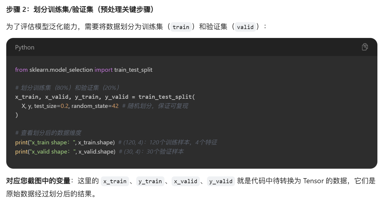x_train(训练特征)、y_train(训练标签)、x_valid(验证特征)、y_valid(验证标签);然后利用map的方法转换为张量,供大数据训练。